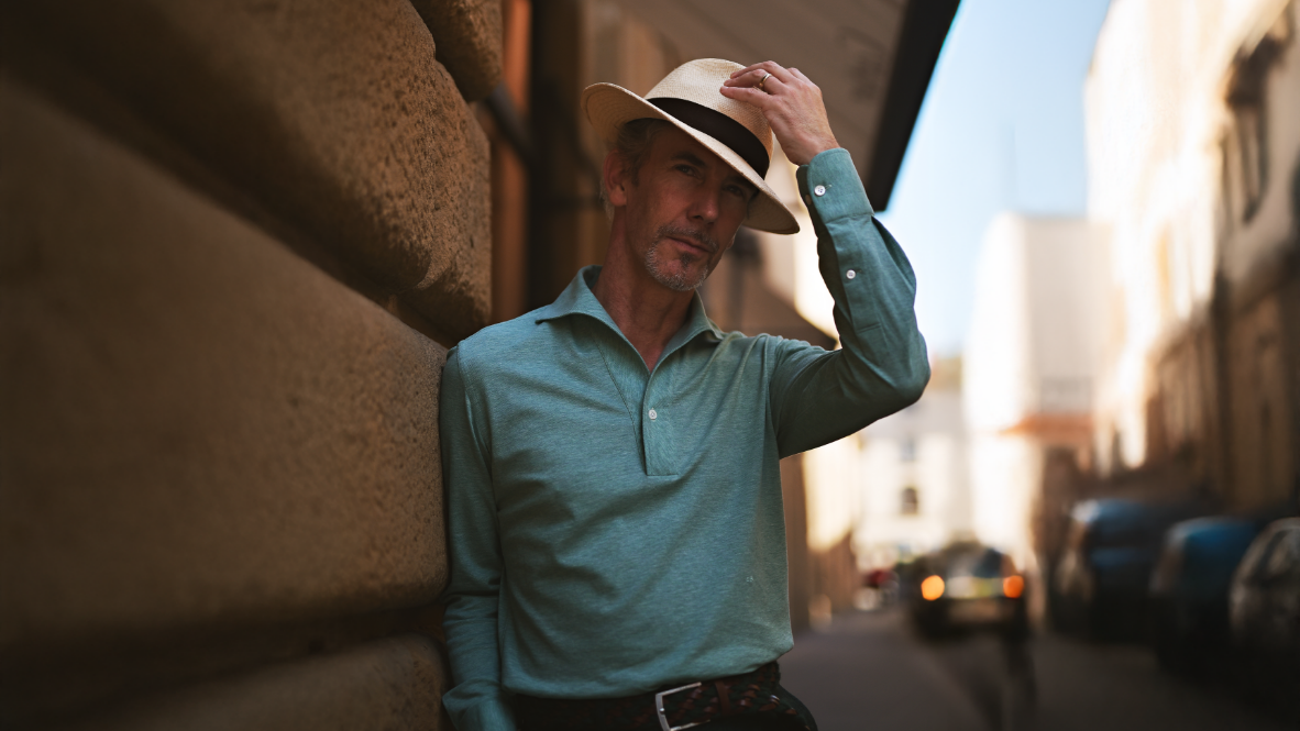Men's knit shirts truly distinguished themselves when paired with a soft-shoulder blazer. The complimentary hue of the shirt evokes a sense of quiet luxury in shirt styling. The timeless sophistication of rich colors of polo shirts worn with soft-colored blazers, emphasis on the chic charm of European leisure, and impeccably tailored trousers complete the discerning gentleman look. The whole look can be elevated with suede slip-ons, which are exclusively for all kinds of business gatherings.